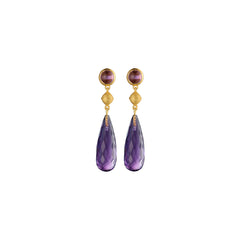 The briolette cut is rare, yet precious. It gained prominence in precious high end jewellery, owing to its teardrop shape and the way it catches and reflects light creating a chandelier effect. In the Royal Prism Amethyst earring, it is applied to a Cultured Amethyst stone, evoking a sense of quiet grandeur. The earrings are crafted in 925 pure silver and plated in 18K gold. Pair them with clean lines, deep hues, or even your favourite white shirt. They’ll always catch the light just right.