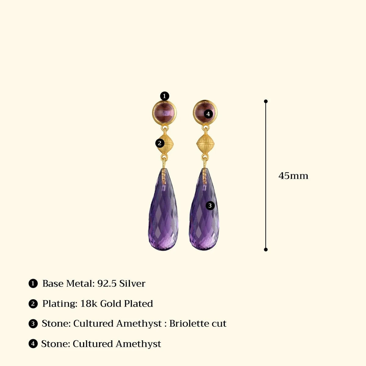 Material : Briolette Cut Cultured Amethyst