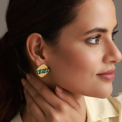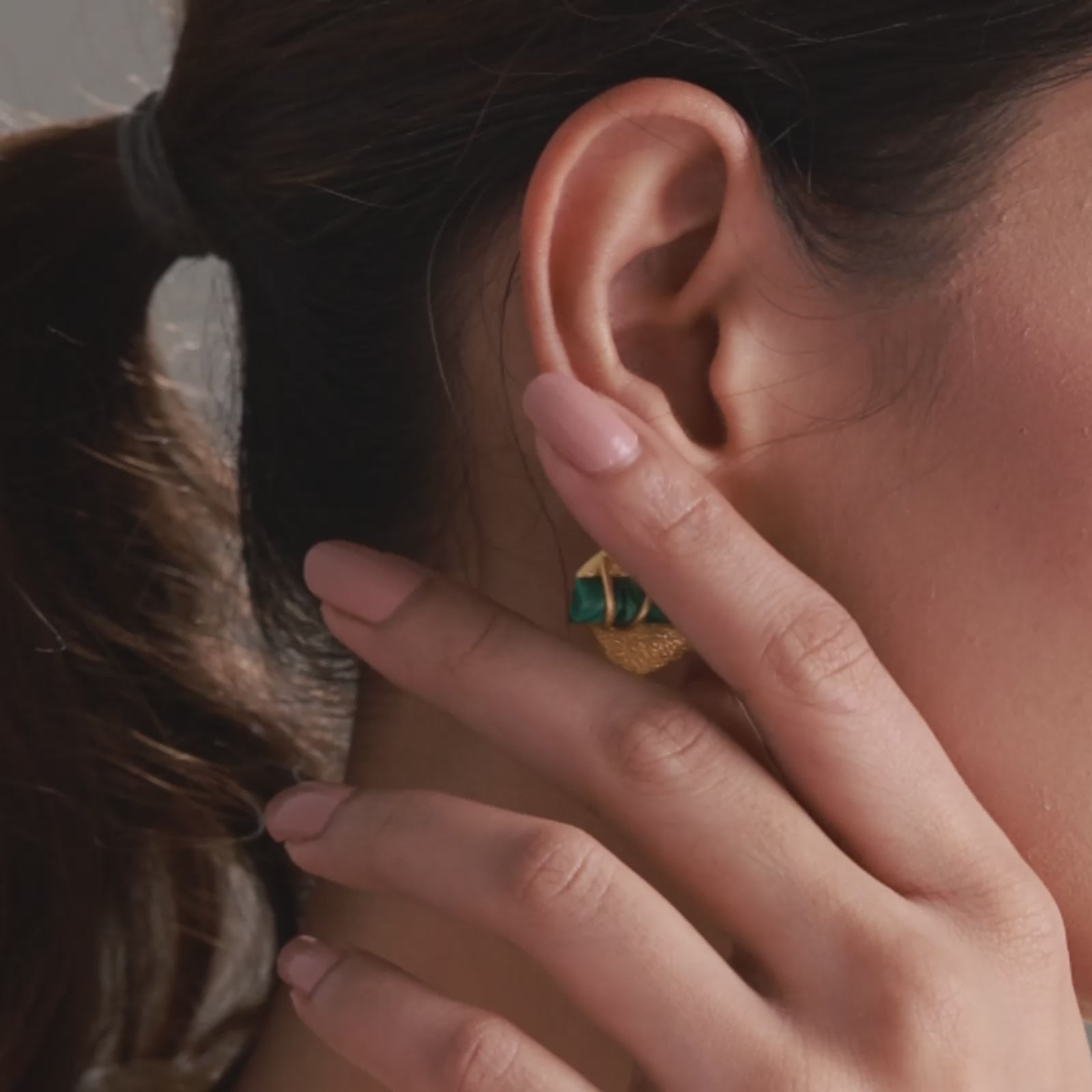 Shaped by the idea of wood adrift in a river, this design translates nature’s rhythm into wearable form. The malachite cylinder is wrapped in golden spirals and set on a textured disc made in 925 pure silver and plated in gold. Made for the Svya woman who lets her instincts lead. Pairs just as easily with office formals as it does with a saree.