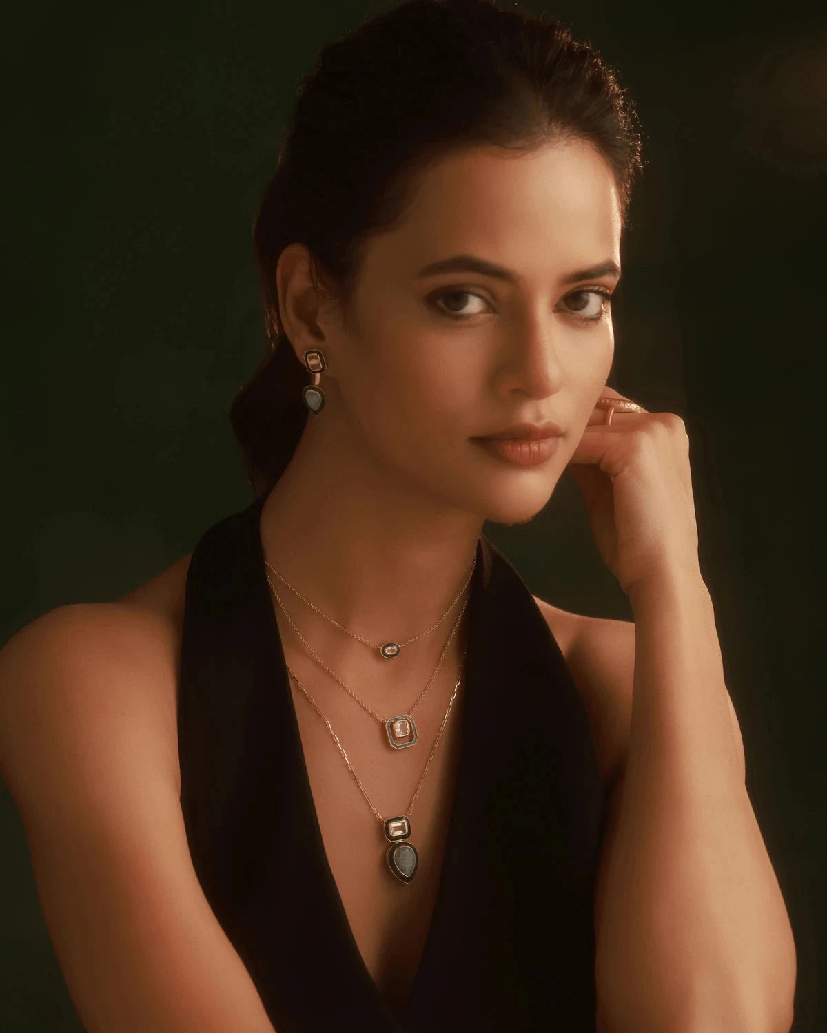 All our pieces are crafted in 92.5 sterling silver with 18K gold plating, finished to international standards. We use a blend of semi-precious and high-grade simulated stones. The plating is skin-friendly, long-lasting, and completely hypoallergenic.