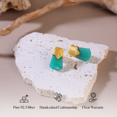 All our pieces are crafted in 92.5 sterling silver with 18K gold plating, finished to international standards. We use a blend of semi-precious and high-grade simulated stones. The plating is skin-friendly, long-lasting, and completely hypoallergenic.